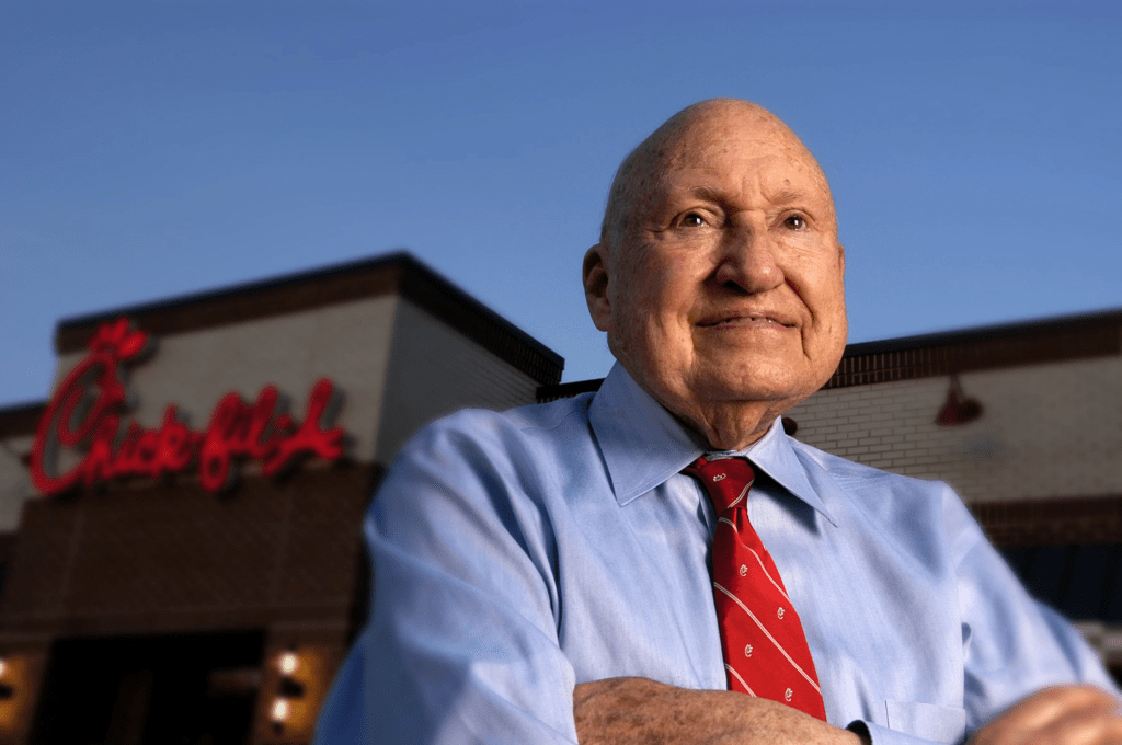 Truett Cathy es el fundador de la cadena de comida rápida llamada Chick-fil-A. Aunque no es tan conocida como algunas otras, tiene 2,700 restaurantes en Norte América y Puerto Rico; y está creciendo exponencialmente, colocándose entre las cadenas de comida con más ingresos en Estados Unidos, solo por detrás de McDonald’s y Starbucks. En el 2021 tuvieron ingresos de casi 17 mil millones de dólares.